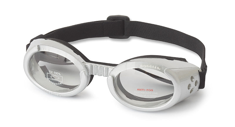 Doggles® ILS™ are the first protective eyewear designed just for dogs! 20+ years of experience has made our Doggles® ILS™ (Interchangeable Lens System) the very best in pet eyewear. For eye protection or fashion Doggles® are known by many. Extra wide nose bridge. Deep lens cup. Padded and flexible rubber frame. Soft elastic adjustable head and chin straps. 100% UV protection. Anti-fog. Shatterproof....because your best friend is worth it!