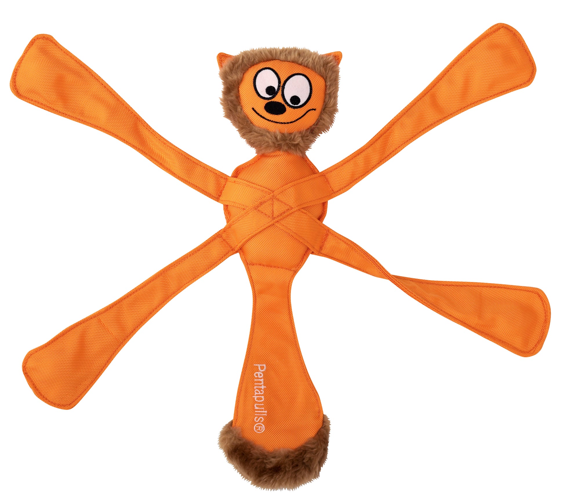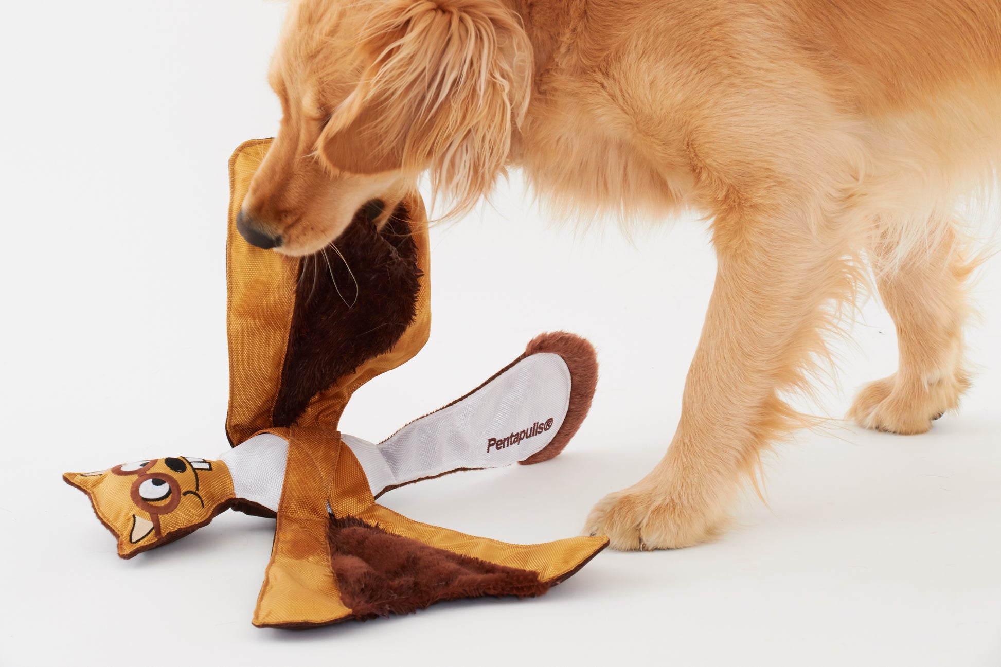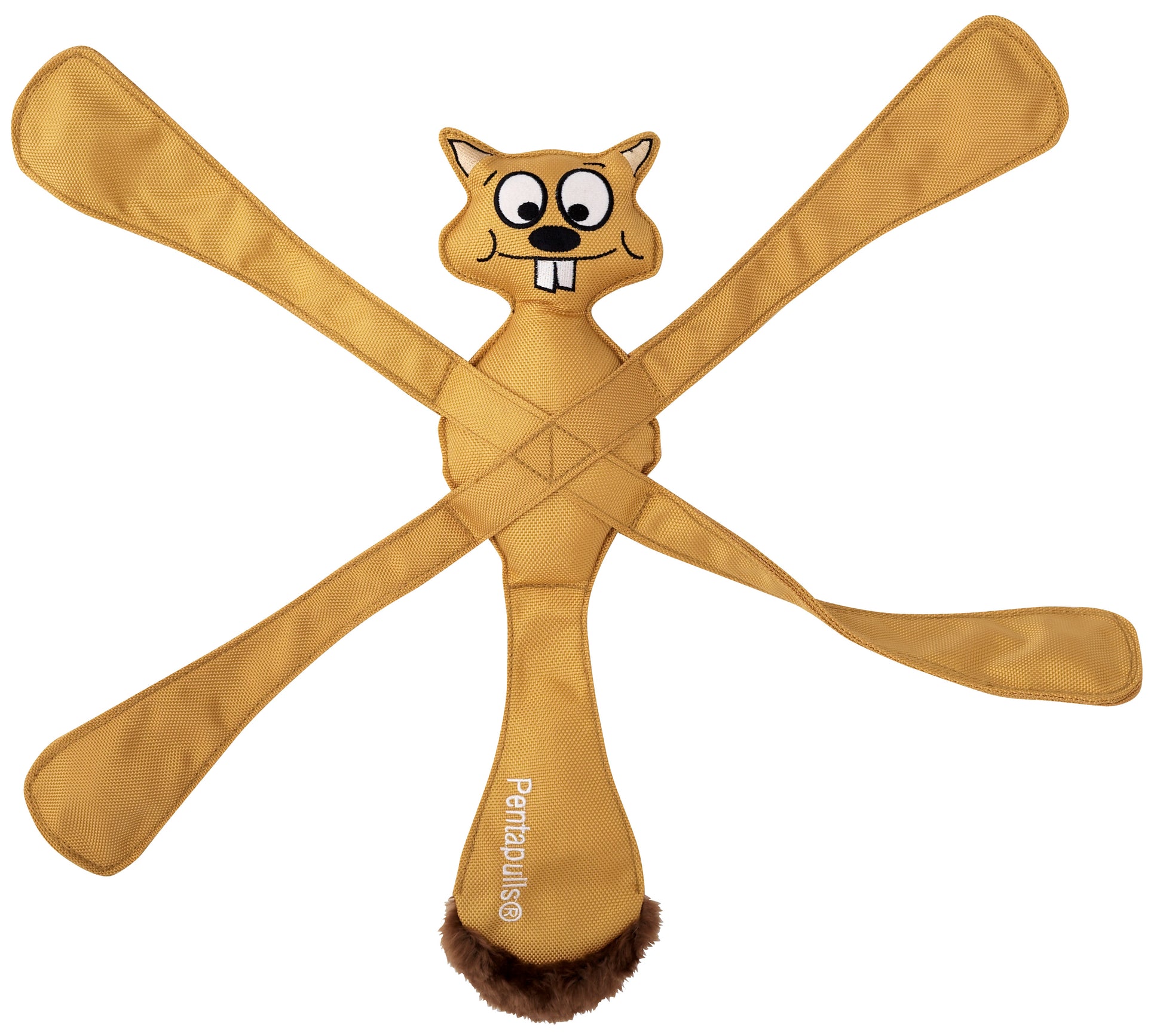 The news is in... Dog Approved! They love them! These toys have been such a great success! Pentapulls are made of 4 layers of 1680 denier nylon for super durability. The arms and legs are designed in an "x" and super stitched to form an excellent toy for pulling, shaking and general rough housing. 5 squeakers.