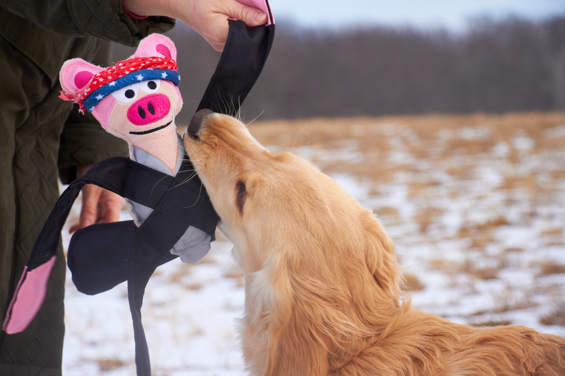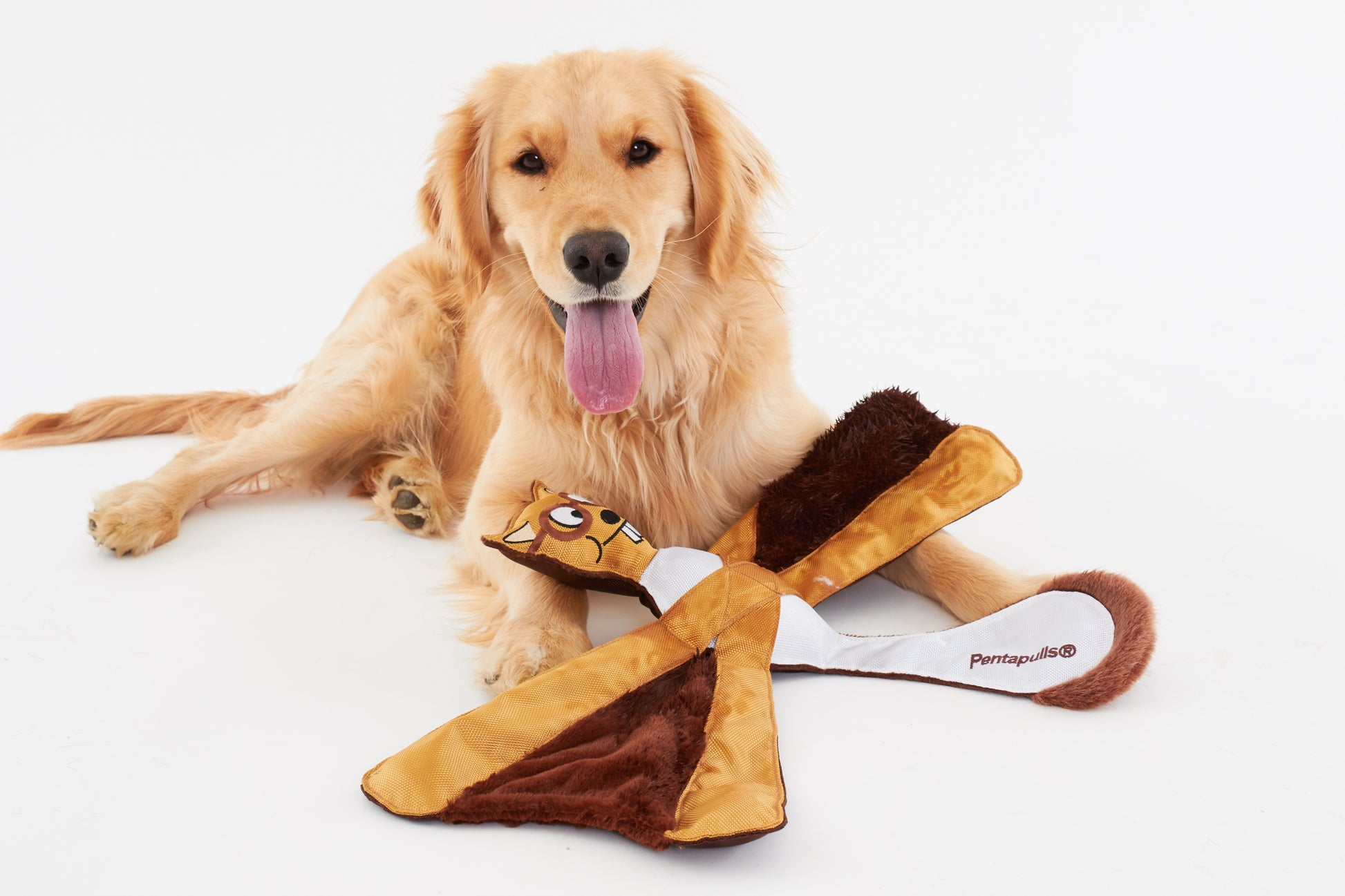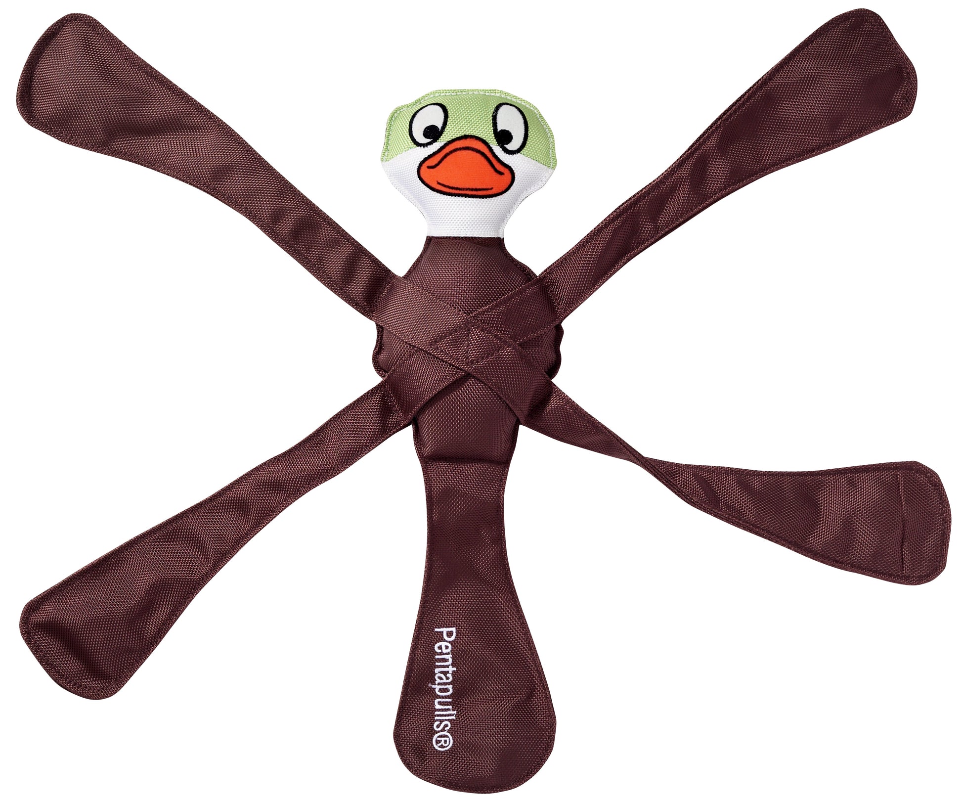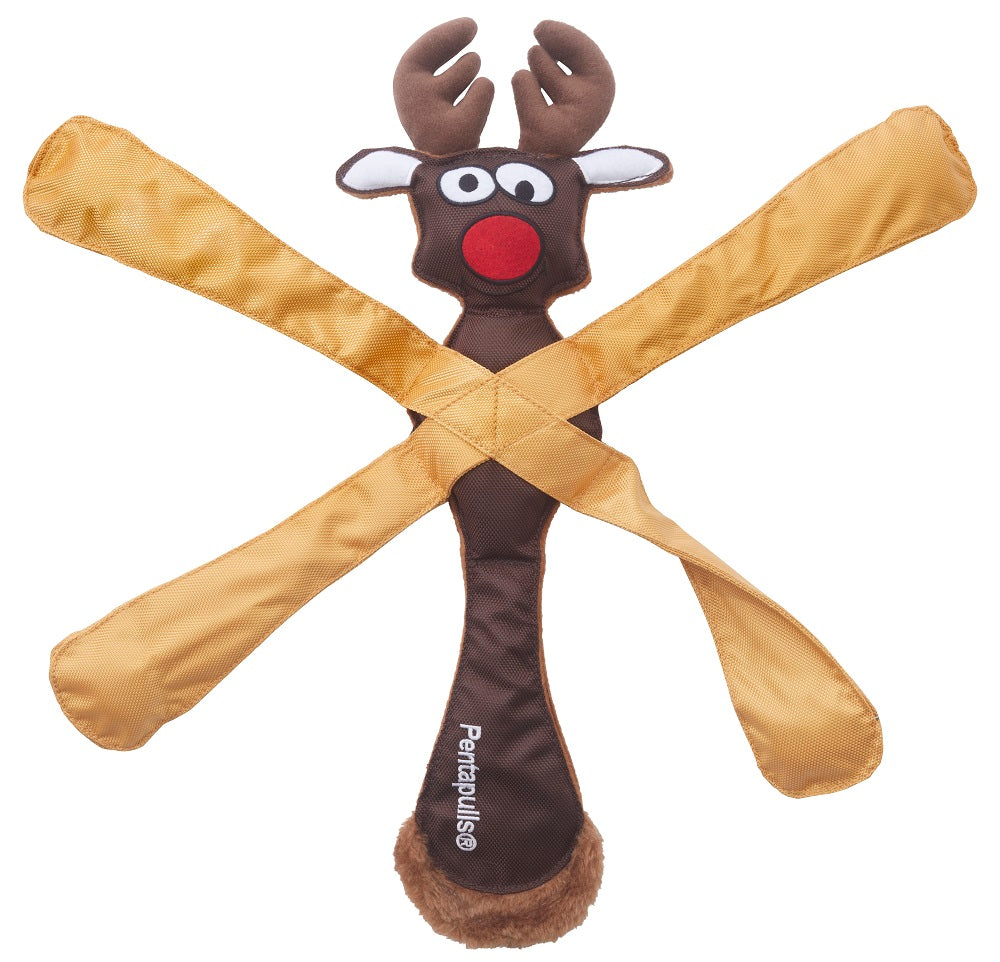 The news is in... Dog Approved! They love them! These toys have been such a great success! Pentapulls are made of 4 layers of 1680 denier nylon for super durability. The arms and legs are designed in an "x" and super stitched to form an excellent toy for pulling, shaking and general rough housing. 5 squeakers.